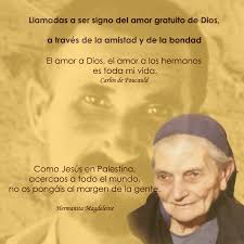 Elegimos al hermano Carlos de Jesús a propósito para ser nuestro padre. Él realmente es nuestro fundador, incluso si murió completamente solo. En su sufrimiento y soledad era como Cristo, y su muerte se convirtió en una nueva semilla de vida.′′ A menos que un grano de trigo caiga sobre el suelo y muera, permanece sólo un solo grano; pero si muere, produce una rica cosecha.» (Jn. 12:24).