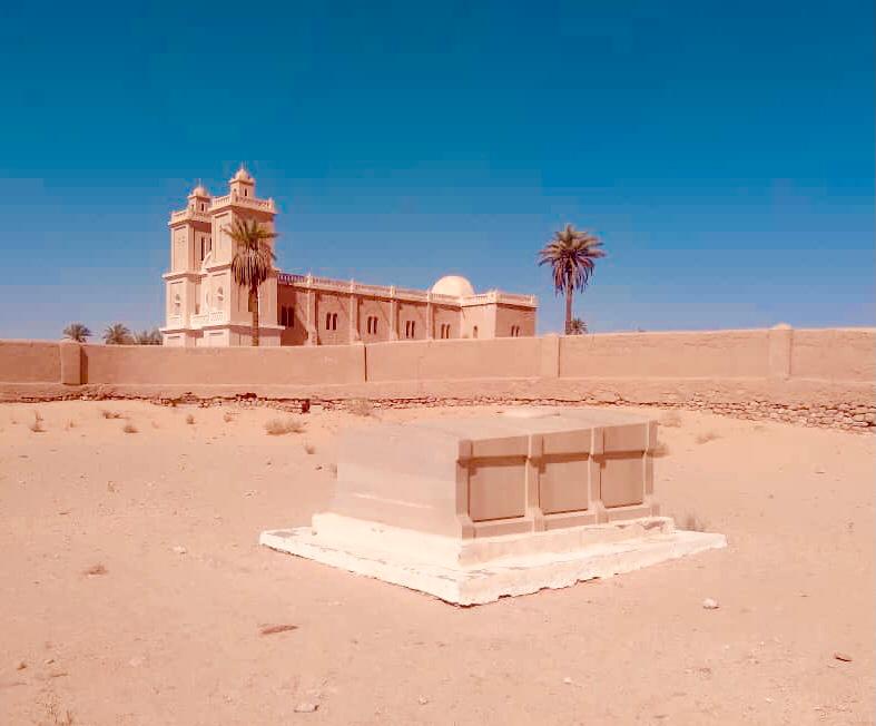 Su cuerpo fue enterrado allí mismo, en Tamanrasset, y en 1929 trasladado al desierto argelino, concretamente al único cementerio cristiano más cercano, aunque a 1.000 kilómetros de donde vivía, en El Golea (El Meniáa).