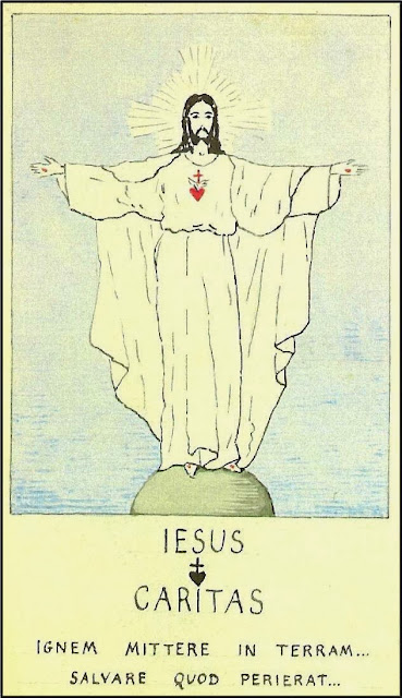 En la parte inferior del dibujo puso sus iniciales «lesus – Caritas» y debajo una enunciación que es su proyecto de vida, realizada con frases de Jesús: «He venido a traer fuego sobre la tierra… para salvar lo que estaba perdido…»(Lucas 12,49, 19, 10)