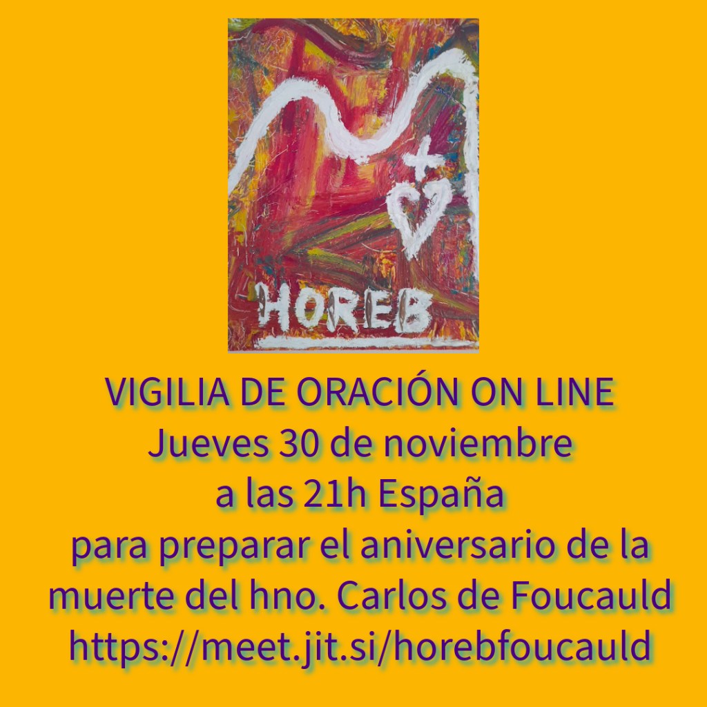 La Comunidad Ecuménica Horeb Carlos de Foucauld se complace en invitarle a la Vigilia de Oración Online, que tendrá lugar el sábado 30 de noviembre a las 21:00 h (hora de España), en memoria del aniversario de la muerte de San Carlos de Foucauld. Durante el encuentro, se presentará el nuevo libro de José Luis Vázquez Borau, fundador y presidente de la CEHCF: