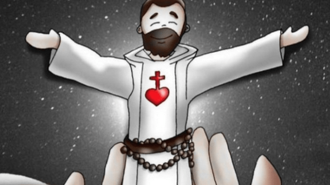 Se cumpla en mí/ Y en todas tus criaturas/ No deseo más/ Padre/ Te confió mi alma/ Te la doy con todo mi amor/ Porque te amo/ Y necesito darme a ti”