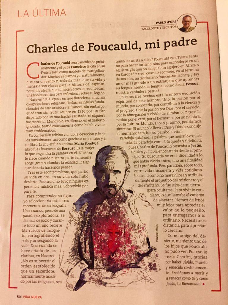 «Visto por los parámetros habituales, la existencia de este personaje inusual fue un fracaso total. Cien años después de ser martirizado en su querido desierto argelino, somos más de 13.000 personas en el mundo que nos consideramos sus hijos espirituales. Ahora la Iglesia lo reconoce. Reconoce el abandono en manos del Padre como camino, la oración que escribió Foucauld en 1896, ignorando que un siglo después miles de hombres y mujeres la rezarían a diario ”, escribe Pablo d’Ors, sacerdote, teólogo, escritor y consejero. al Pontificio Consejo de la Cultura del Vaticano, en un artículo publicado por Alfa y Omega, 06-04-2020. La traducción es de Cepat.